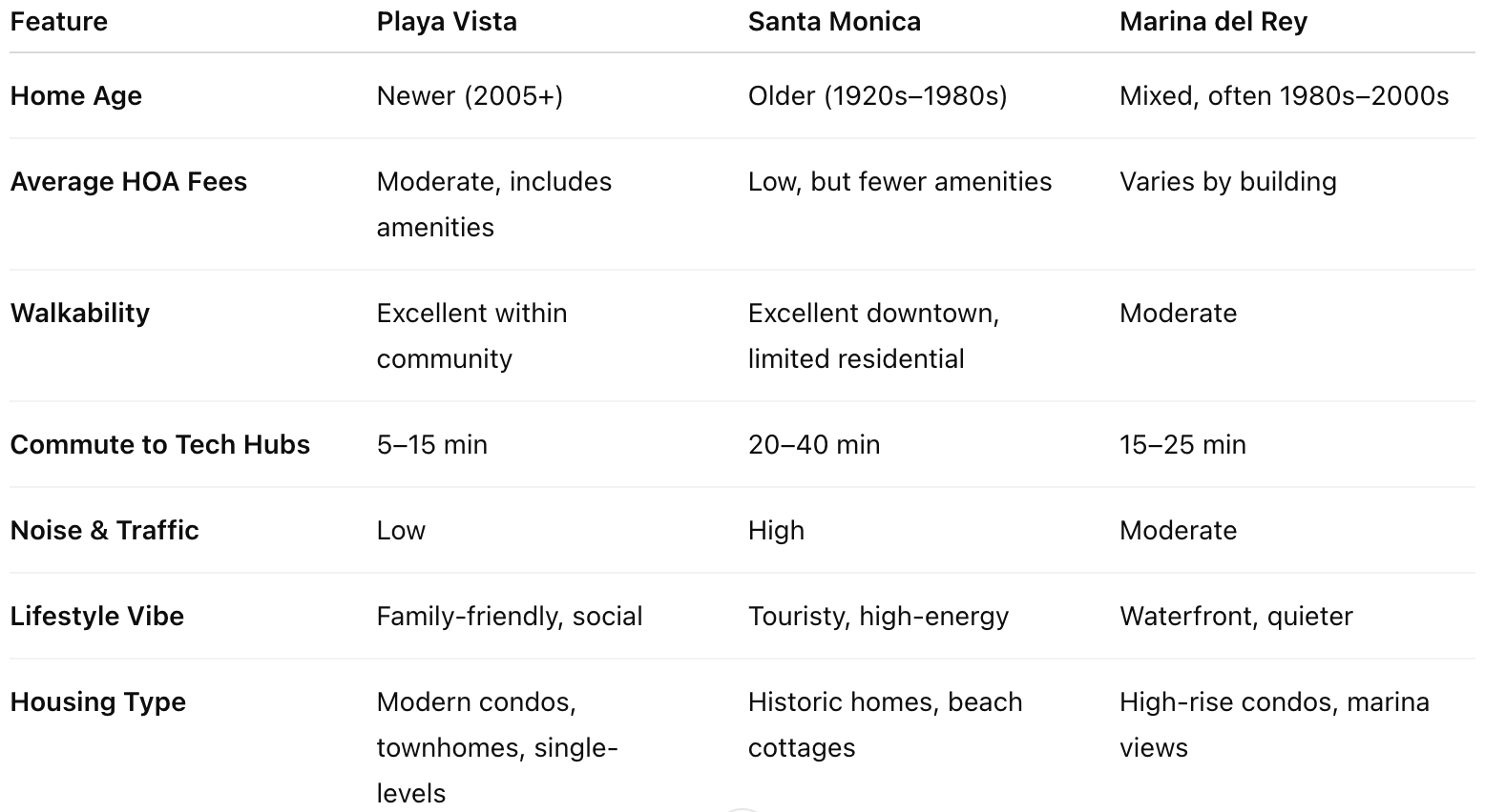 8. Comparing Playa Vista, Santa Monica, and Marina del Rey